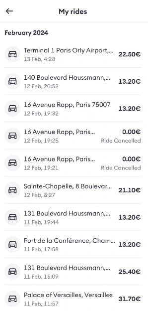 파리에서는 볼트를 이탈리아에서는 우버를 주로 사용했다. (이탈리아에서는 볼트가 서비스 되지 않음)