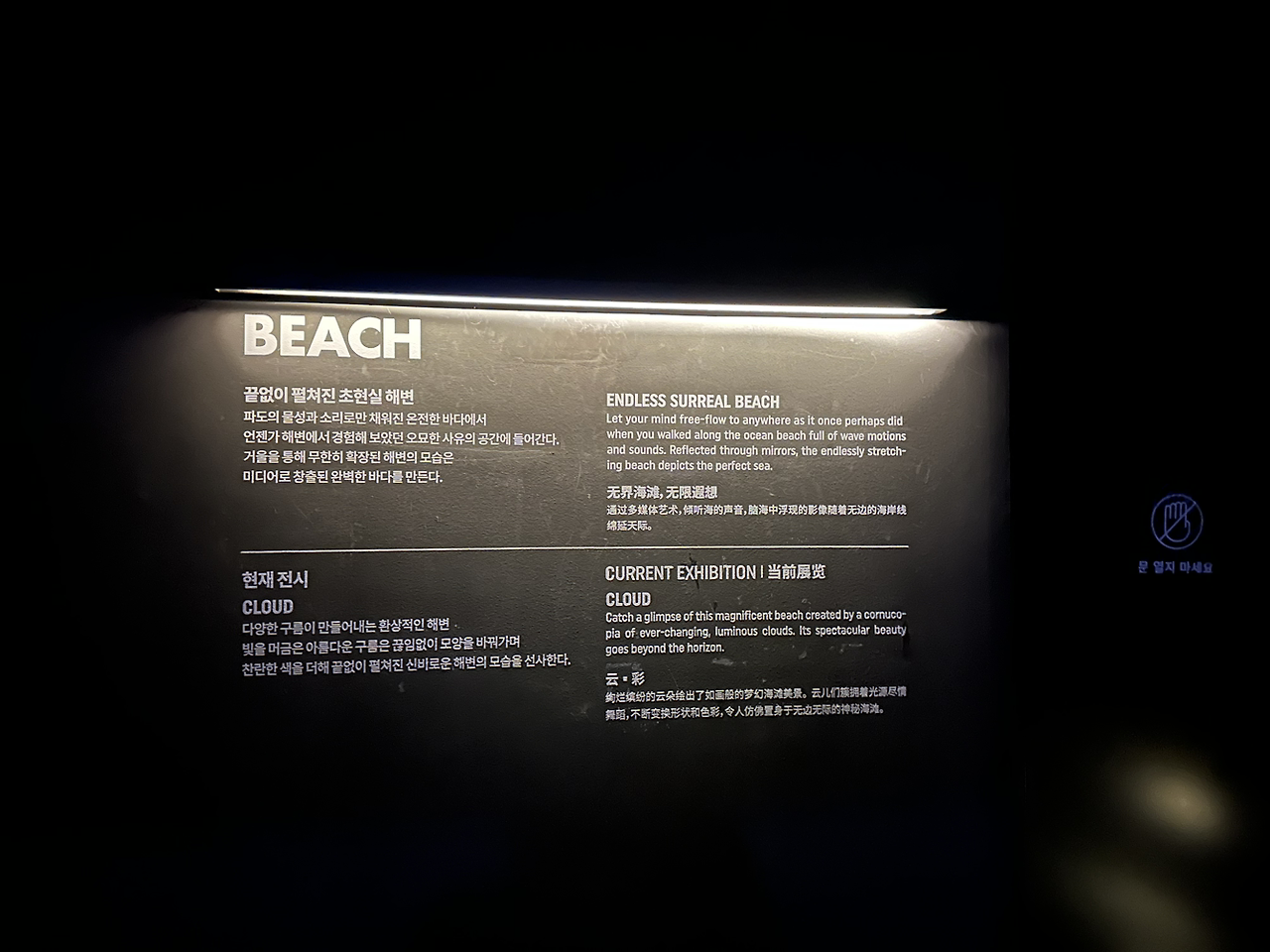 이 공간은 사실 그렇게 크지 않다. 실제 크기가 가늠되지 않는다. 해변에 온 듯한 착각을 일으킬 정도로 놀랍고 아름다웠다. 이보다 더 좋은 장면은 없을 거야라고 생각했는데.. 다음 전시 공간에서 계속 깨졌다.