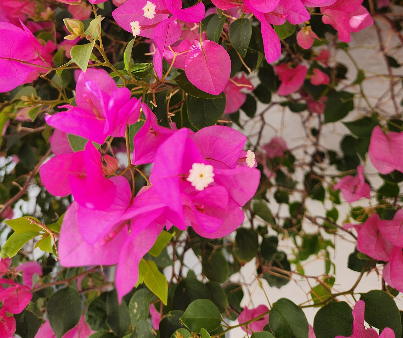 땀이 식었기에 동네를 다시 돌았다. 시기적으로 가을이고 능소화가 진 것을 보고 왔는데 활짝 핀 능소화를 다시 만났다. 한국 능소화보다 색이 짙은 것 같으며, 이국에서 보는 능소화와 무궁화가 무척이나 반갑다. 화려한 핫핑크의 부겐빌레아라는 꽃이 만발했는데 꽃 속에 꽃이 있어 신기했다.