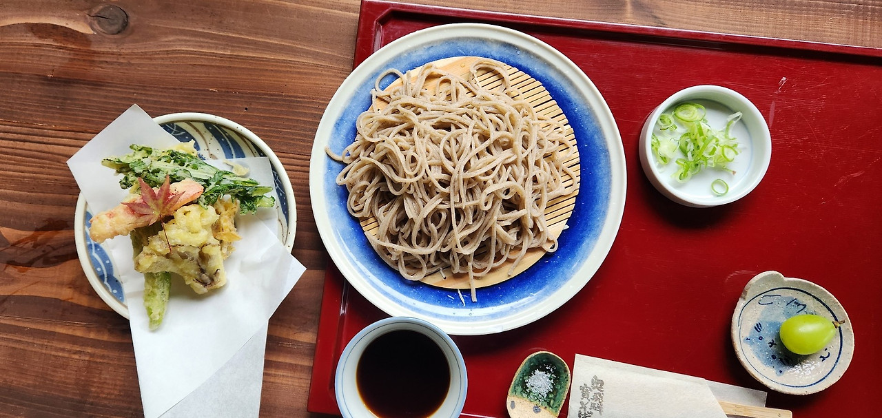 가게는 외관상 가건물처럼 허름하게 보이나 안으로 들어가 보니 시설이 깔끔하고 통창이라 눈이 시원하다. 자리는 불편하지만 흘러가는 물과 산을 보기 위해 통창과 붙은 ‘카운타 세끼’, 일자테이블에 길게 앉았다. 주문한 메밀국수가 맛없어도 용서되는 집이다.