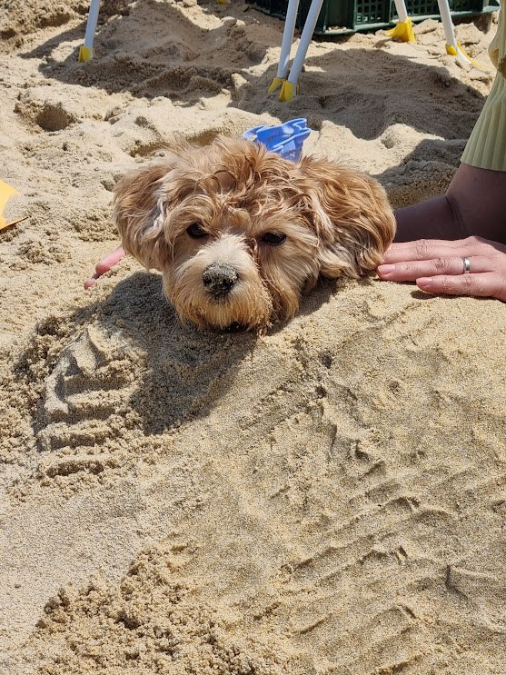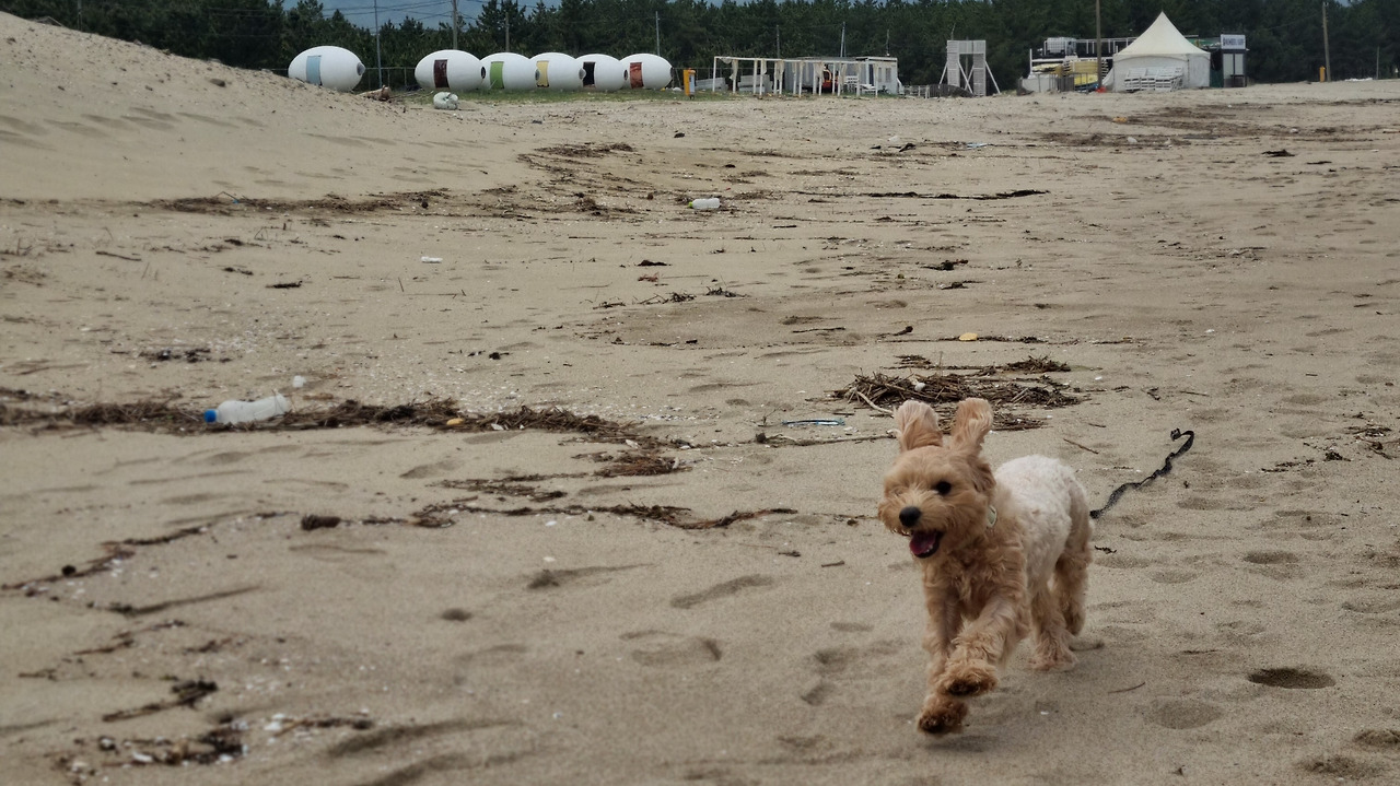 조개껍질 옆에 놓인 나뭇조각들을 킁킁거리다 보니, 어느새 해는 구름 뒤로 숨었다. 해 질 녘 바다는 금빛으로 번들거렸고, 바람은 낮보다 부드러웠다. 나는 파도를 한 번 더 바라보다 엄마와 아빠, 형, 누나가 있는 쪽으로 달려갔다. 저녁이 가까워진다는 건 아쉽지만, 오늘을 품에 안고 돌아갈 수 있다는 뜻이기도 했다.
