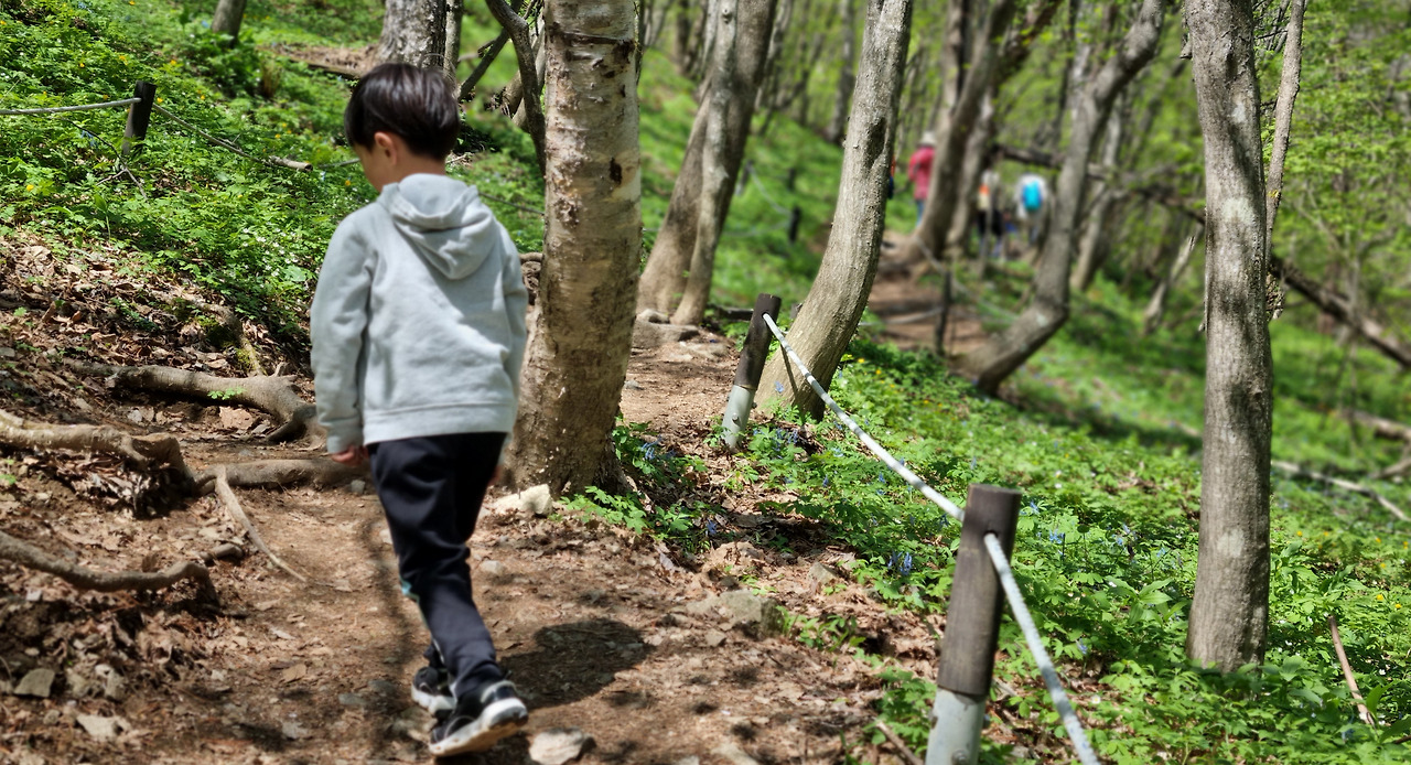 곰배령 입구를 지나자마자 숲은 생각보다 깊고 청명했다. 나무 사이로 햇살이 부서졌고, 길 가장자리엔 이름도 모를 들꽃들이 무리 지어 피어 있었다. 누군가는 '야생화 천국'이라 불렀다. 등산로 입구에서 국립공원 직원분들이 나눠주는 곰배령 들꽃 팜플렛을 받아 들었을 때만 해도, 낯선 이름들로만 가득한 그 목록이 과연 실감 날까 싶었지만, 길을 오르다 보니 정말로 그 꽃들이 군락을 이루며 곳곳에 만개해 있었다. 동의나물 꽃, 홀아비바람꽃, 현호색 꽃이 그야말로 카펫처럼 깔려 있었다. 아이들은 꽃을 보며 탄성을 질렀고, 나 역시 문득 훌쩍이는 것도 잊은 채 카메라 셔터를 눌렀다. 이 풍경만으로도, 올라오길 잘했다는 생각이 들었다.