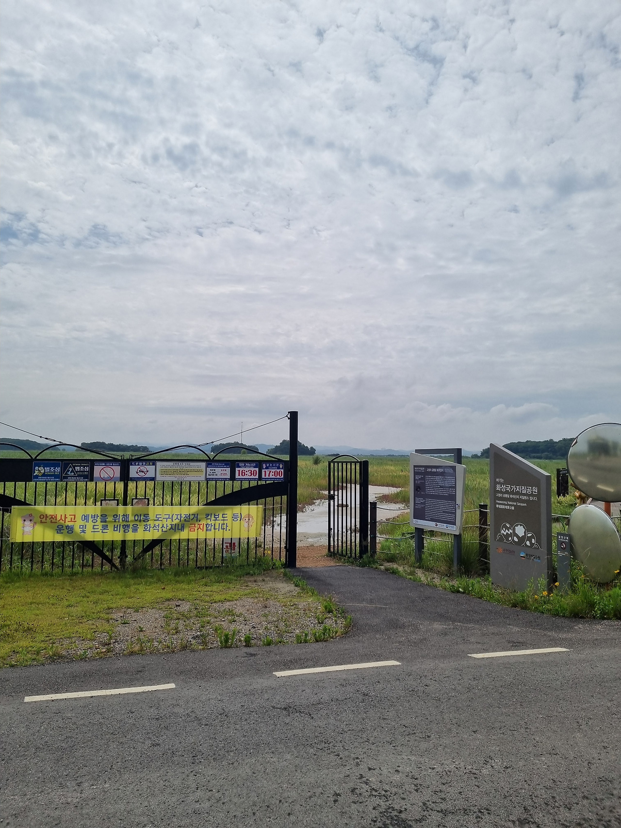 공룡알만 보고 돌아가기엔 아쉬움이 남았다. 고속도로를 달리다 멀리서 본 송산 그린시티 전망대가 떠올랐다. 그냥 들러보기로 했다. 차를 몰고 올라가는 길은 한적했고, 막연한 기대도 있었다. 그런데 도착해 보니 '토요일·일요일 휴무'라는 안내문이 입구에 붙어 있었다.
