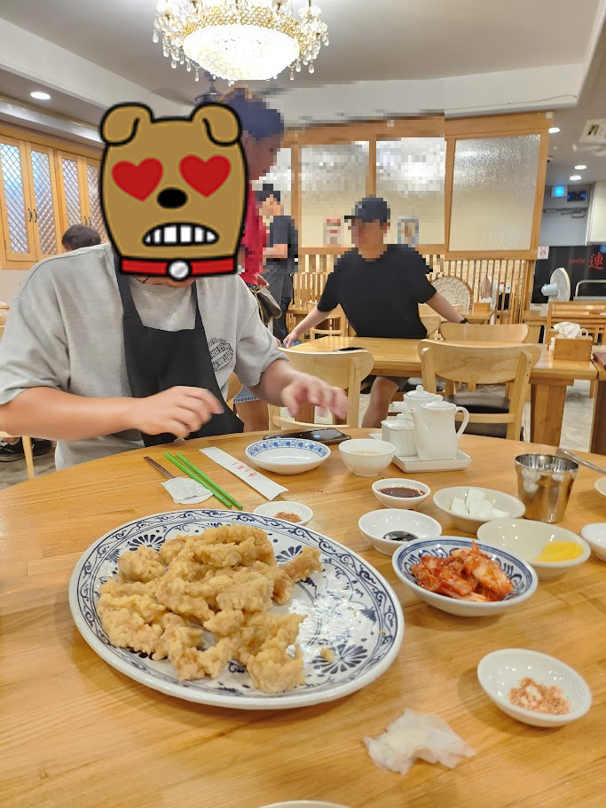그리고 마지막 한 점을 입에 넣고 단무지 하나로 입가심한 뒤, 차가운 재스민차 한 모금을 마시는 그 순간이다. 느끼함은 사라지고, 고기튀김의 여운만 입 안에 남는다. 입술에 고기튀김의 고소한 기름기가 살짝 묻어 있지만, 니글거림도 느끼함도 없다.