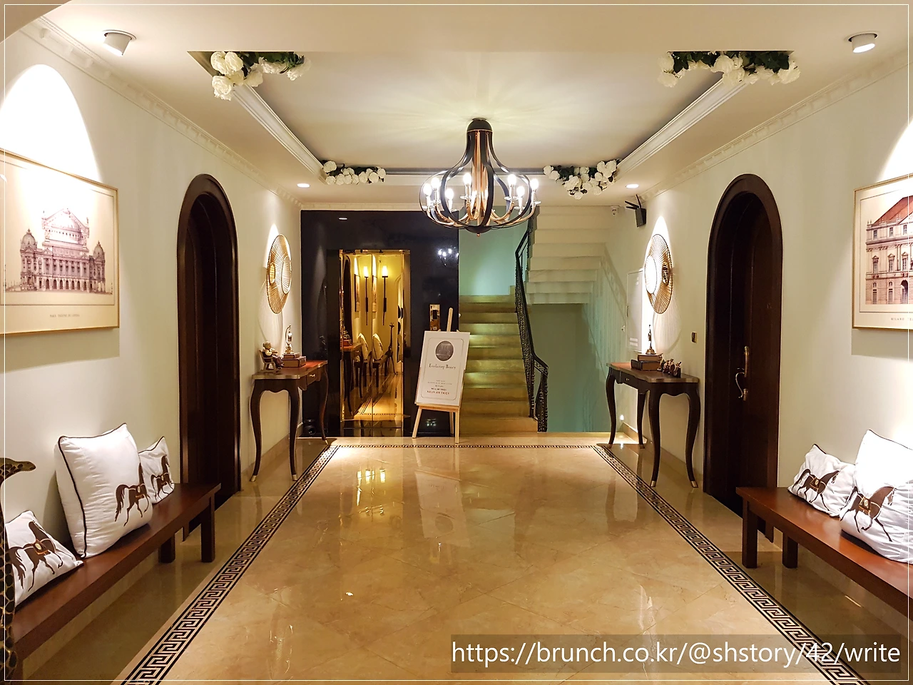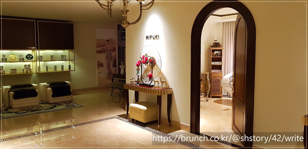 높은 천장, 샹들리에, 그리고 로비 전체를 감싸는 압도적인 분위기. 우리는 스파에 온 게 아니라 다른 세계에 들어온 것 같았다. 그리고 가장 놀라웠던 건 공기의 속도였다. 로비에는 우리를 포함해 세 팀을 넘지 않는 손님만 있었다. 동선과 예약 간격을 정교하게 조절하지 않으면 절대 나올 수 없는 밀도. 아내가 내 손을 잡았다.