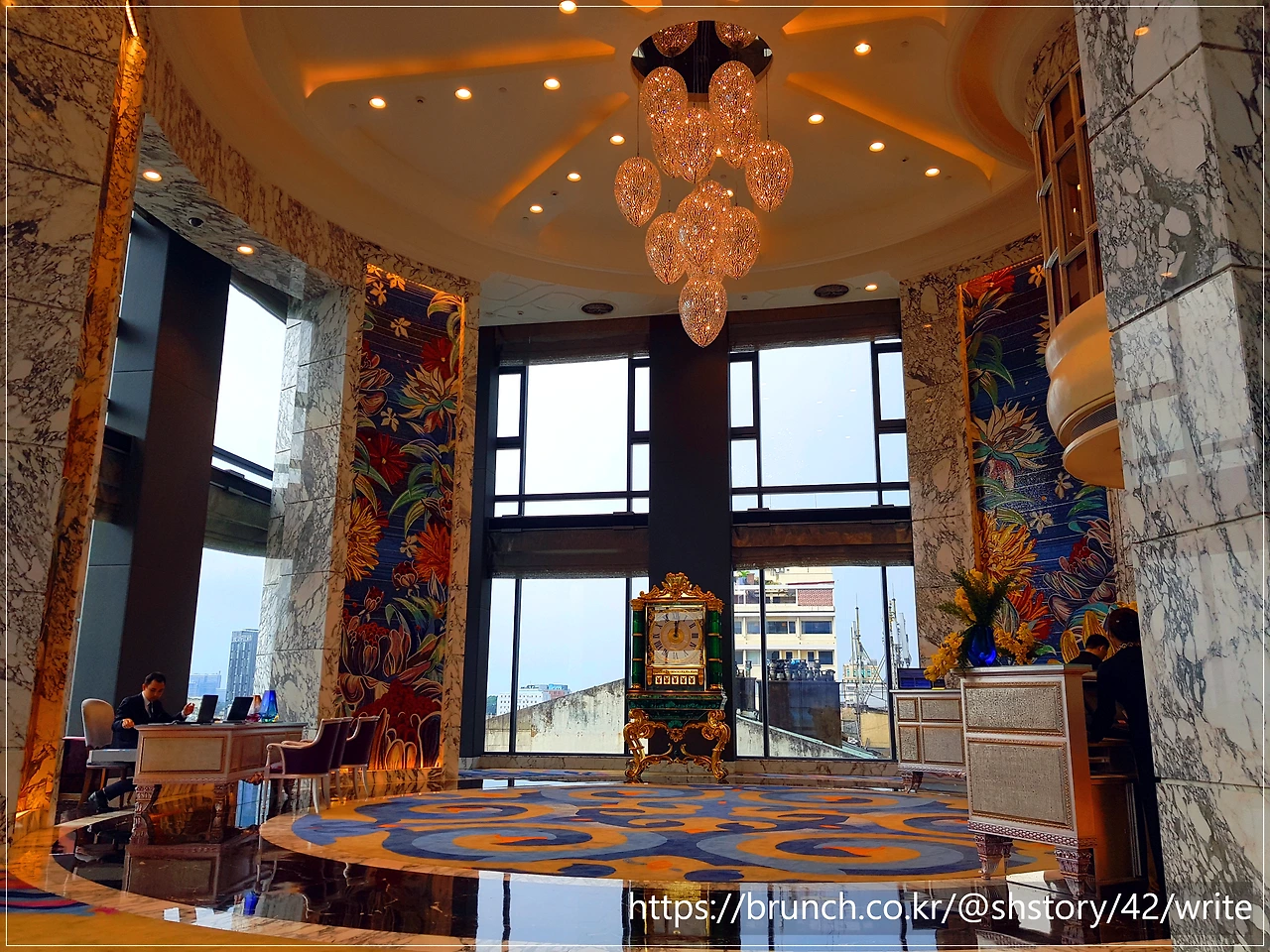 육중한 문이 소리 없이 열렸다. 클래식한 몰딩과 순백색과 골드의 조화, 바닥을 가득 덮은 두꺼운 페르시안 카펫, 그리고 창밖으로 펼쳐지는 도시의 파노라마. 이곳은 단순한 라운지가 아니었다. 호텔이 숨겨둔 별관 응접실 같았다.