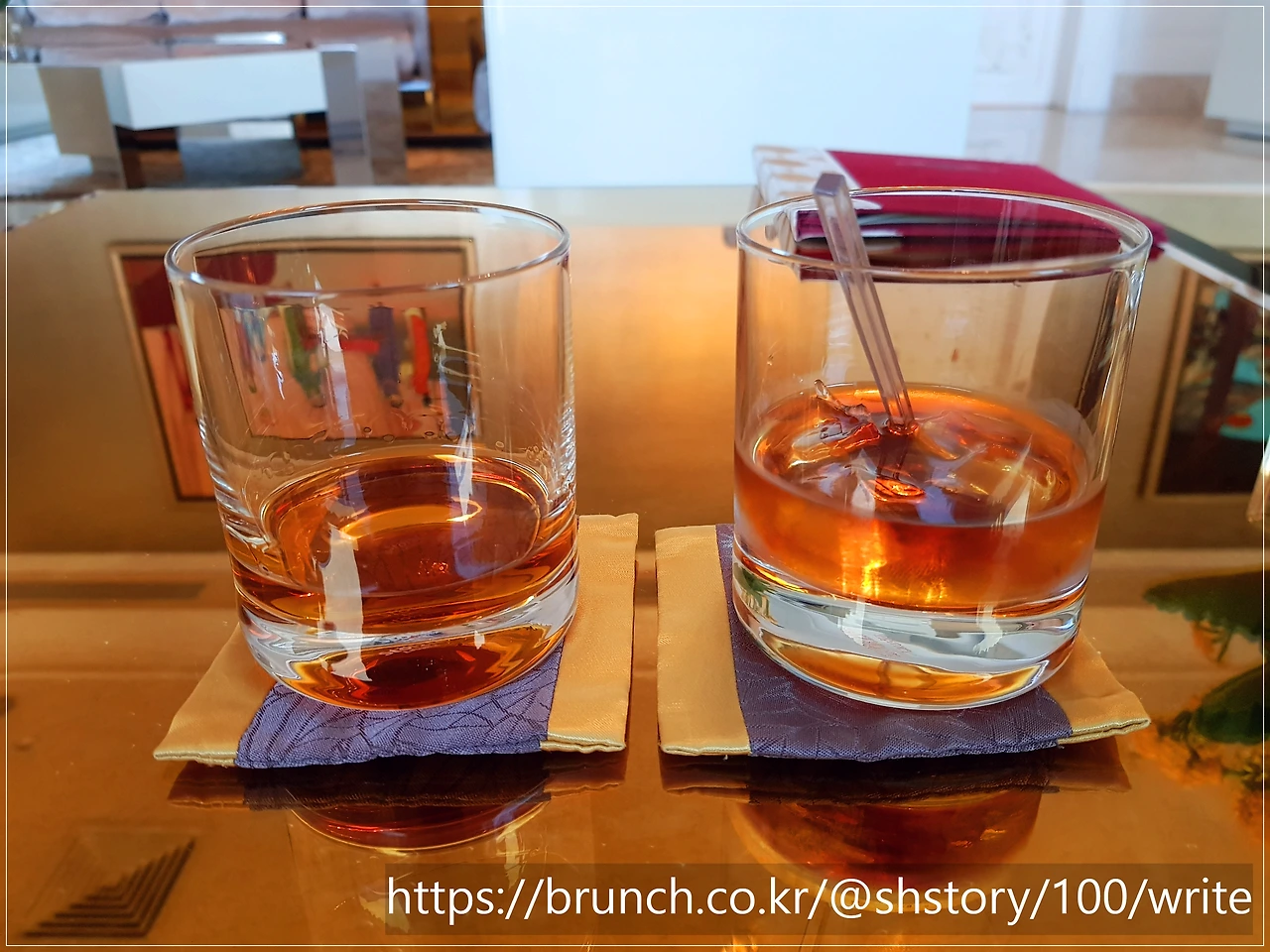 잠시 후, 얼음 위로 호박색 액체가 천천히 흘러내렸다. 잔을 들어 한 모금 머금었다. 묵직한 오크 향과 함께 기억 하나가 얼음 위로 떠올랐다.