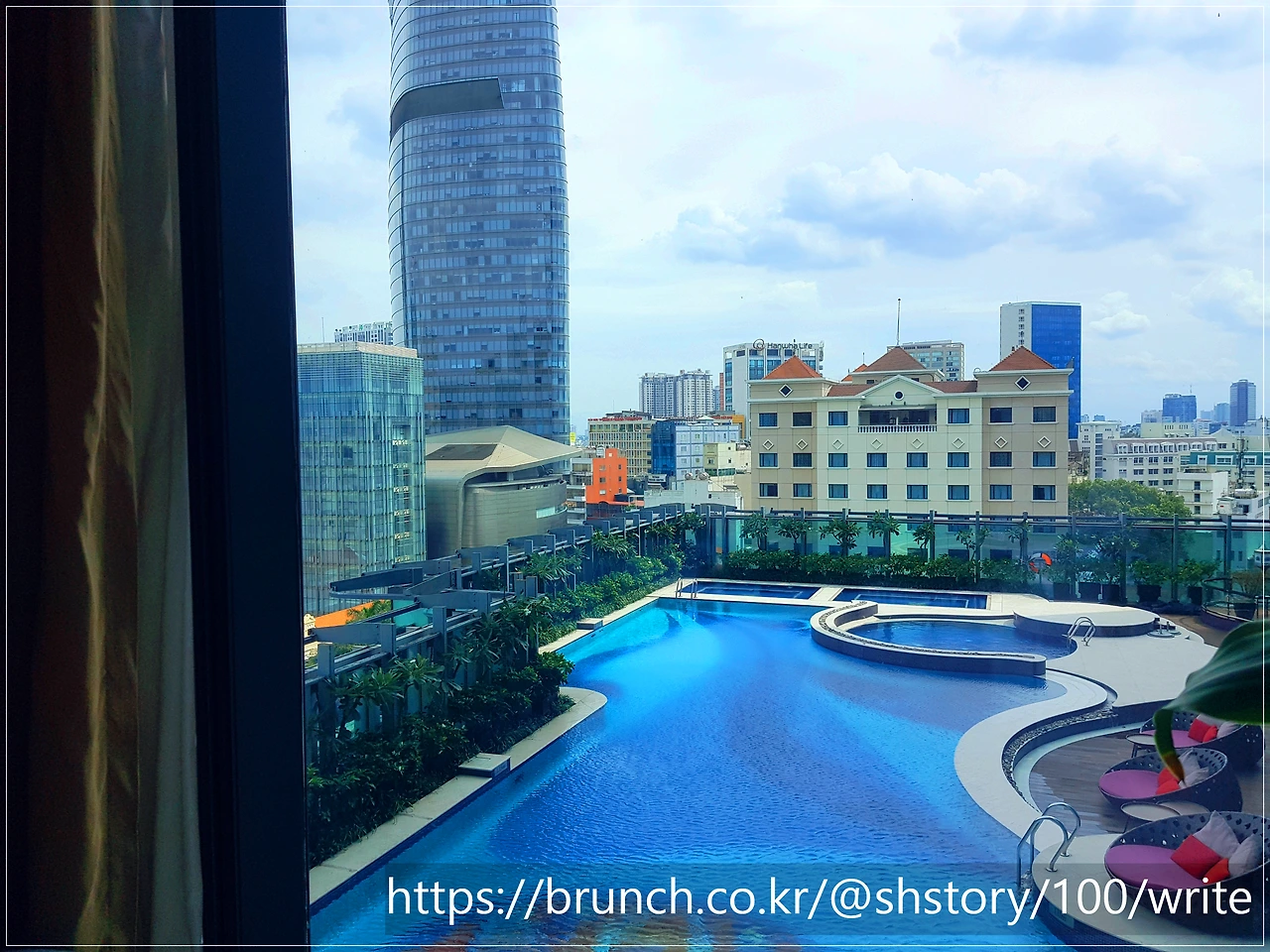 이 호텔의 욕실은 사이공강 리버뷰를 정면으로 마주한다. 욕조에 뜨거운 물을 받았다. 물이 차오르자 야경의 수평선이 욕조의 수평선과 나란히 정렬되었다.