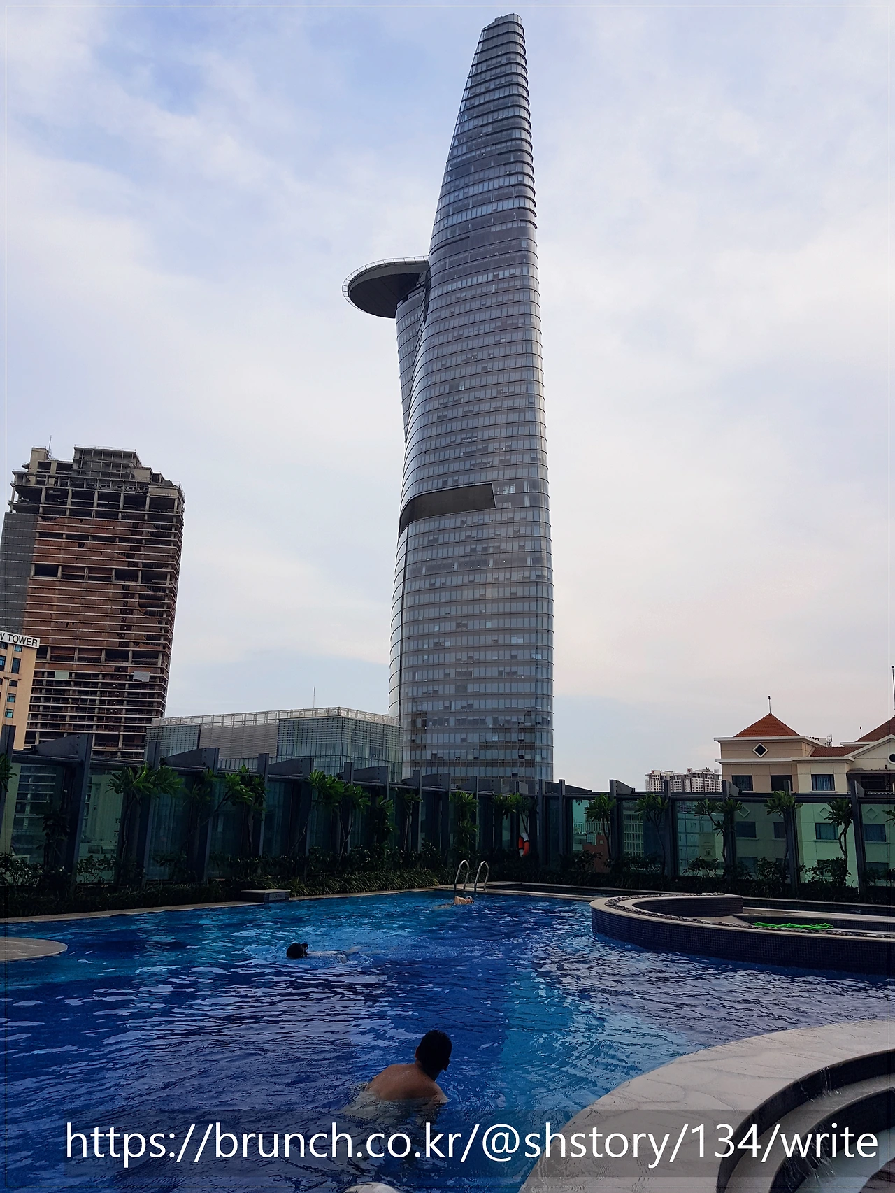 수영장은 시티뷰였다. 물속에 몸을 담근 채 정면을 바라보자, 호치민의 상징인 '비텍스코 타워'가 우뚝 서 있었다.