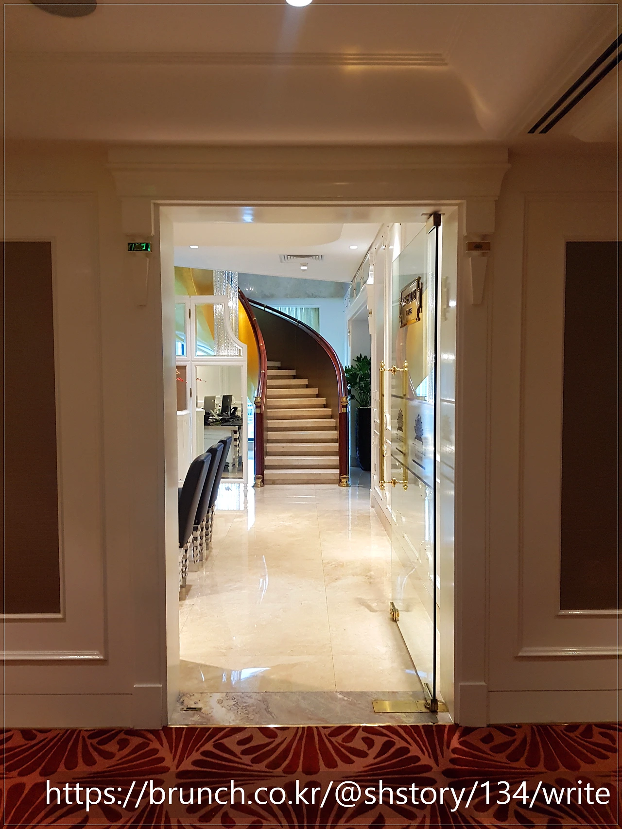 입구에 들어서자 높은 층고와 풍부한 광량이 시야를 가득 채웠다. 대리석과 글라스가 빚어내는 마감은 과시적이지 않으면서도 공간에 팽팽한 수직적 긴장감을 부여했다. 압도적인 공간감, 그 안에서 느껴지는 묘한 해방감. 아내의 양보로 마주한 이 풍경이 더욱 각별하게 다가왔다.