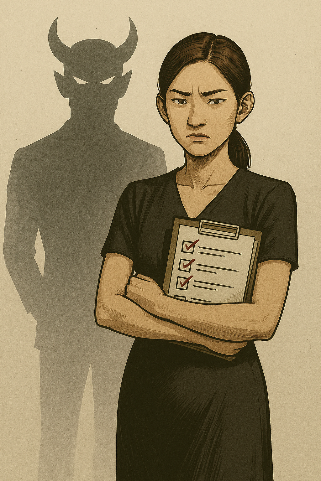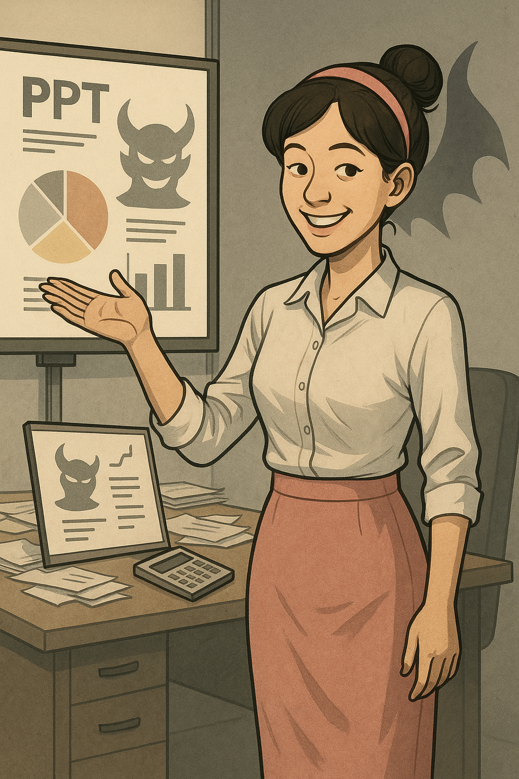 별칭 해석: ‘칼잡이선배’는 말 그대로, 늘 후배들을 벼랑 끝까지 몰아붙이며 날카로운 지적을 쏟아내는 인물을 풍자한다. 가차 없는 지적과 냉정함이 그녀의 무기이며, 업무에서는 누구보다 뛰어나지만, 그만큼 함께 일하는 후배들은 늘 긴장의 칼날 위를 걷는 듯한 압박을 느낀다.