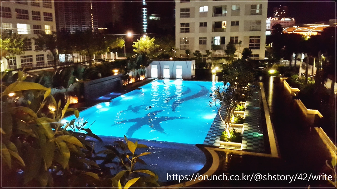 1군이 빛과 속도의 도시였다면, 7군은 질서와 여백의 도시였다. 도로는 넓고 깨끗했고, 가로수는 이상하리만큼 단정하게 정렬되어 있었다. 밤인데도 불안하지 않았다. 도시는 조용했지만 멈추지 않았고, 정리되어 있었지만 생기를 잃지 않았다. 내가 알고 있던 동남아의 도심과 달랐다. 이곳에는 ‘생활’을 설계하려는 의도가 있었다. 첫 숙소는 Happy Valley Apartment였다.