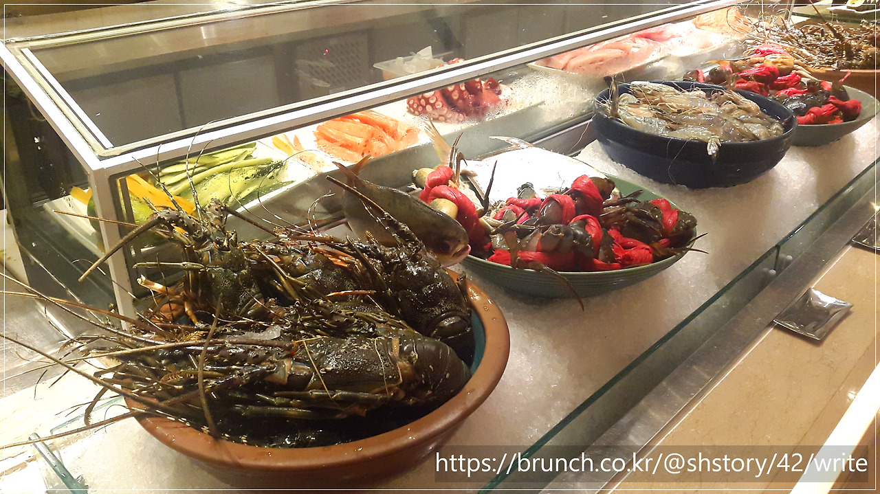 음식의 비주얼은 흠잡을 데 없었다. 메인인 랍스터는 테이블에서 소금, 치즈, 소스를 고르면 즉석에서 구워져 나왔다. 뷔페답게 무제한, 나머지는 자유롭게 고르는 구조.