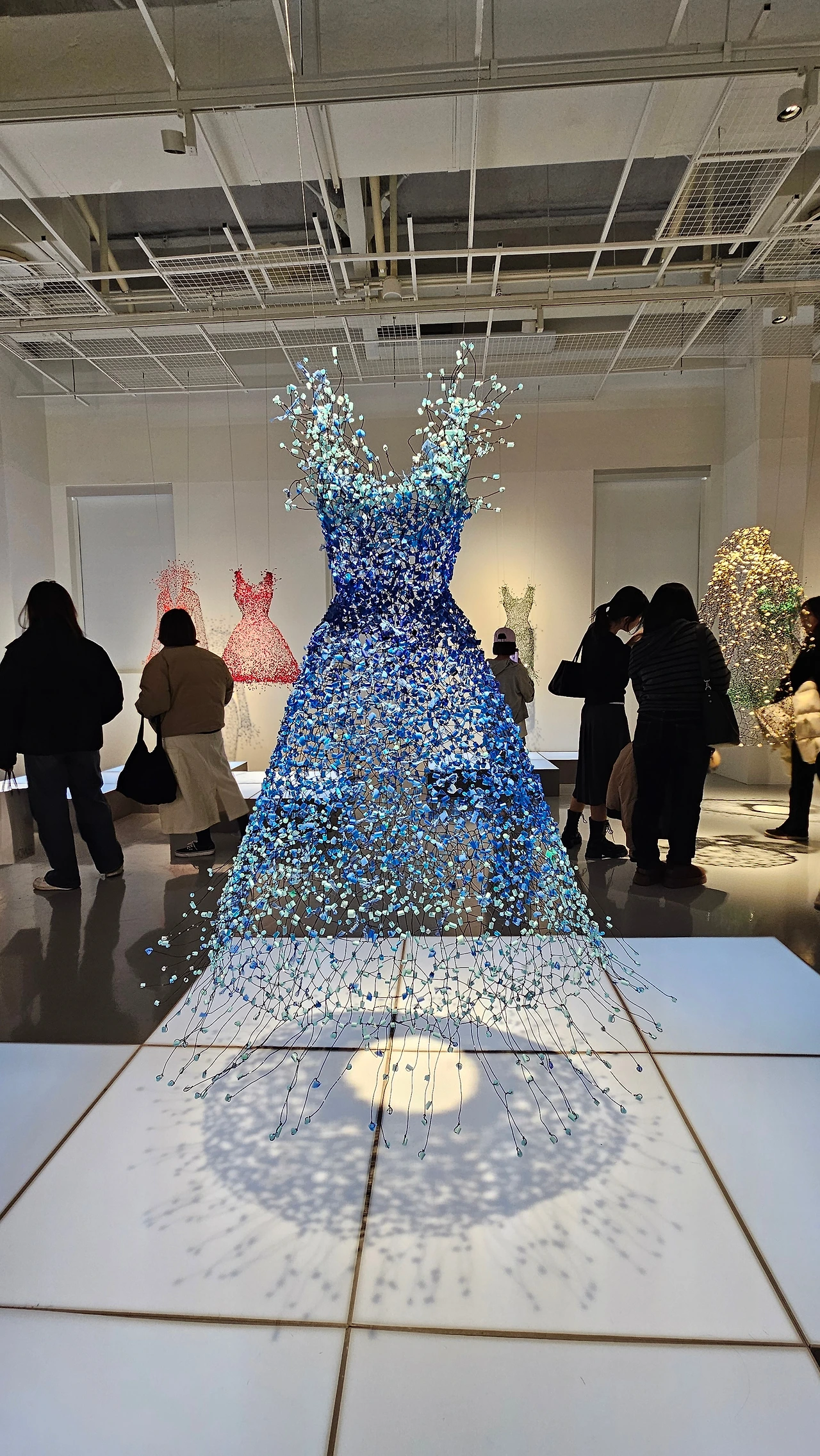 오래 마음에 남은 건 작가 인터뷰 영상 속 한 장면이었다. 앙상한 나무에 걸린 드레스. 인공 소재로 만들어졌는데, 자연 속에서 조금도 어긋나지 않았다. 리본이 바람에 흩날리듯 매달린 그 장면에서 예술은 결국 자연에서 출발한다는 걸 조용히 실감했다.