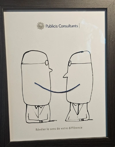 그의 작품은 거창하지 않았다. 캔버스 가득 채운 유화도, 조명을 정성스럽게 받은 조각도 아니었다. 그냥 검은 선 몇 개. 작은 사람 하나. 그리고 빨간 포인트.