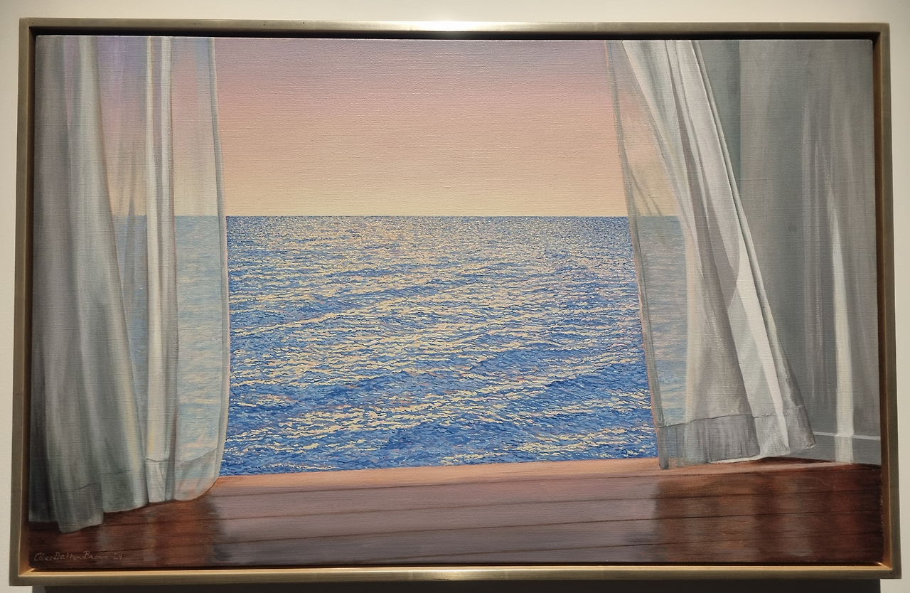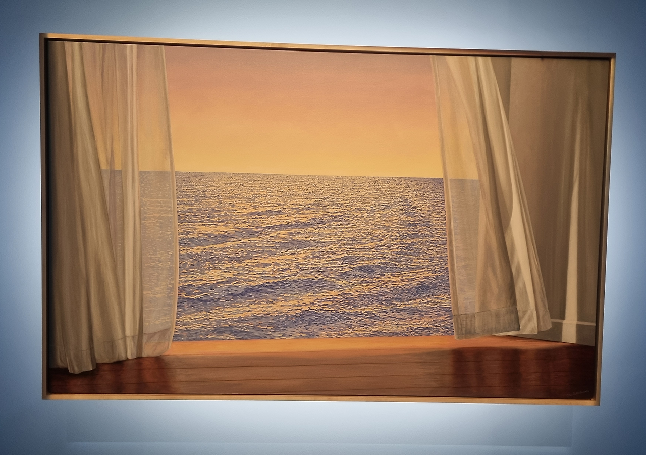 전시장에 들어서자, 마치 색채 연구실에 들어온 것 같았다. 튜브에서 막 짜낸 듯한 습작들부터, 커튼 사이로 바다가 펼쳐지는 완성작까지. 그녀의 그림 앞에 서면 처음엔 '그냥 커튼이네, 그냥 바다네' 싶다. 그런데 한참을 바라보고 있으면 뭔가가 살며시 달라지기 시작한다. 그녀의 하이퍼리얼리즘 화풍 효과로 모든 것이 현실 창문처럼 느껴졌다.