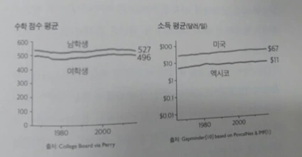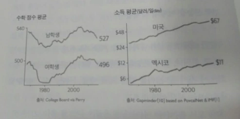 남학생과 여학생의 수학 점수 평균/ 미국과 멕시코의 소득평균