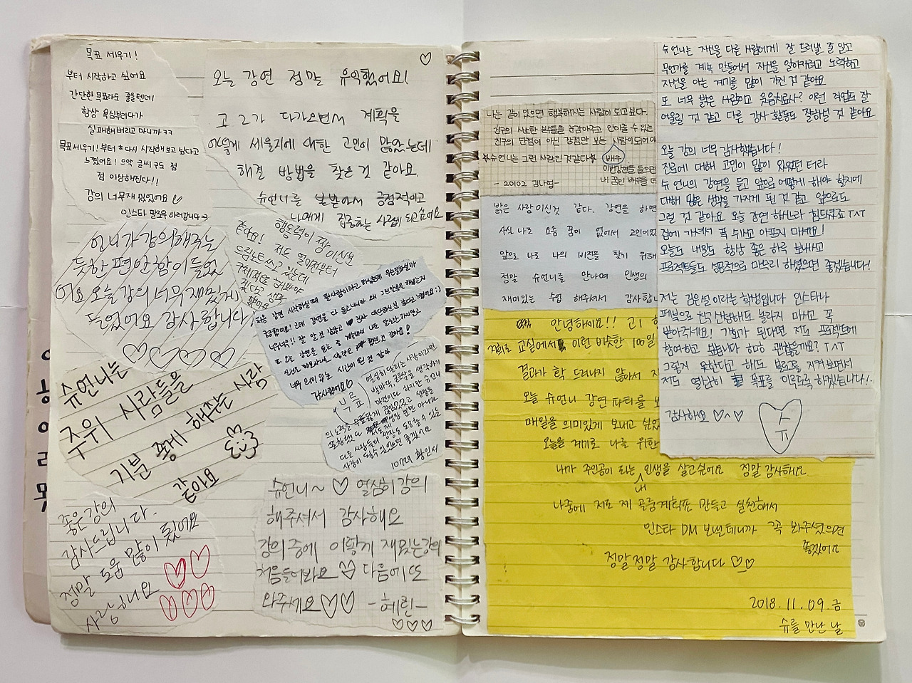 골룸 동아리 마지막 시간엔 함께한 친구들에게 피드백을 받는다. 특강, 수업, 워크숍 무엇을 하든 간에 피드백은 꼭 받아 꼼꼼히 살핀다. 청소년 친구들의 생각과 느낌이 고스란히 담긴 글들 속에서 교육자로서 내가 나아가야 할 방향을 본다. 수많은 멋진 교육자들 사이에서 나만이 할 수 있는 역할이 무언인지를 본다. 피드백은 좋은 질문과 좋은 고민을 안겨주는 고맙고 소중한 자료이다.