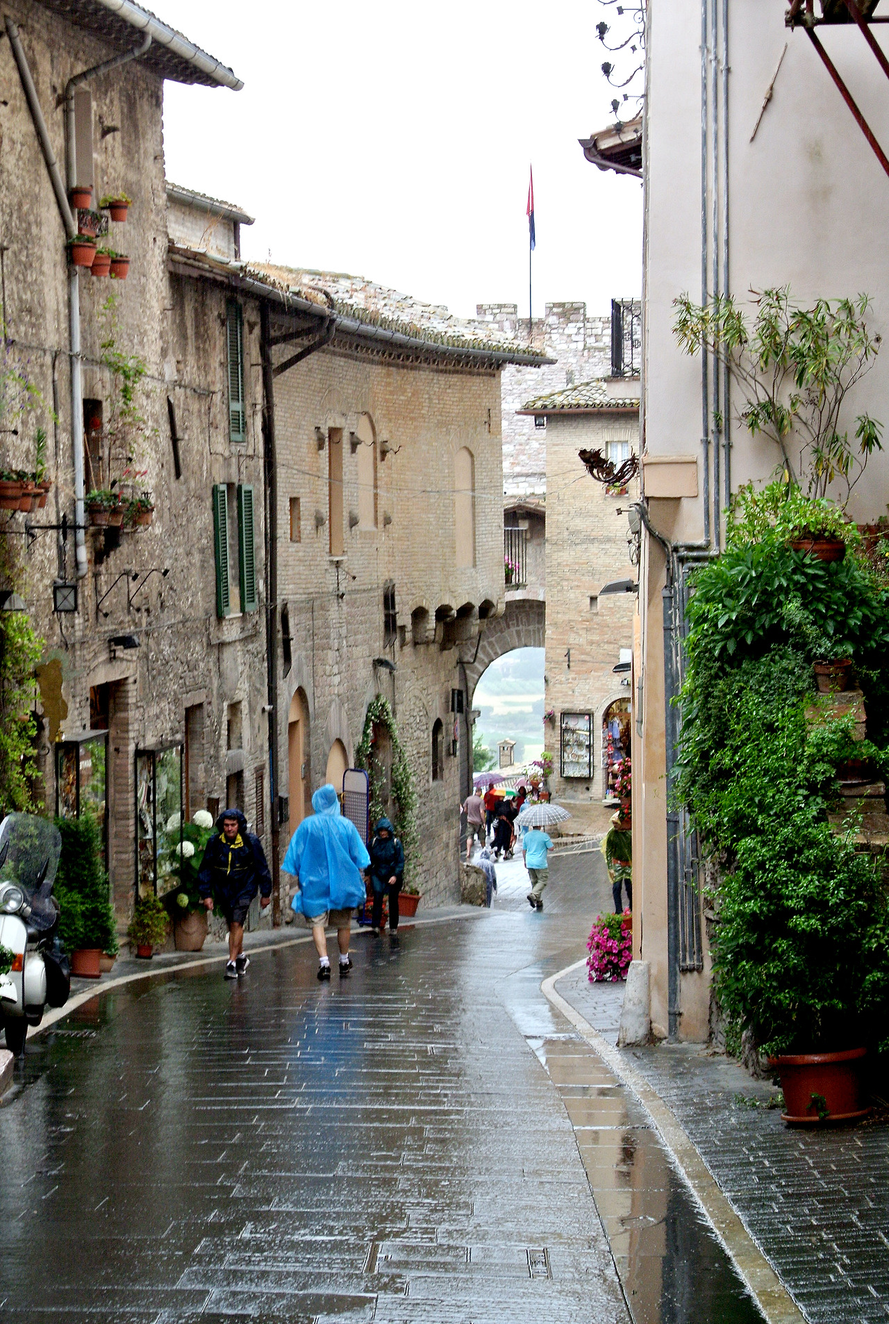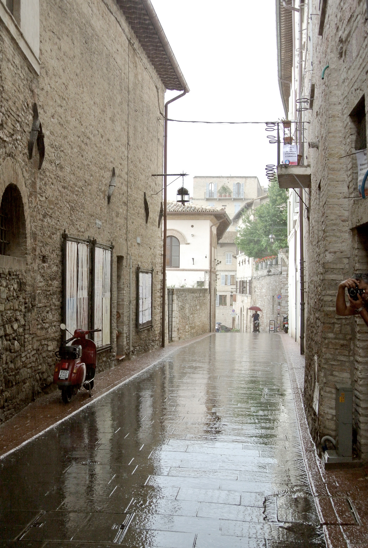 마치 영화 속의 한 장면 같았다. 비가 오니 아씨시의 벽돌로 지은 건물들이 빗물에 젖은 색으로 물들었고, 안 그래도 조용한 마을에 빗소리만 가득 울리고 있으니.