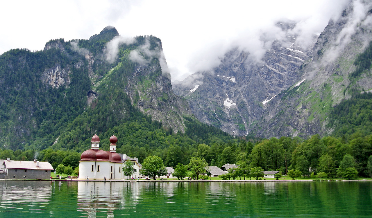 독어 표기는 Konigsee 이구, 카우치서핑 호스트의 추천으로 가게 되었었다. 전 날 호스트에게 잘츠부르크 근교에 갈만한 곳을 물었었다. 할슈타트를 당연 1순위로 추천해줄 줄 알았는데 몇 가지 브로셔를 내게 건네주었다. 그 맨 위에 있던 브로셔에 있는 사진 속 장소가 바로 쾨니히 호수였다. 호수 위에 붉은 지붕을 쓴 신비로운 건축물이 눈에 띄었는데, 다름 아닌 성당이었다. 그 사진을 보고 한눈에 반했다.