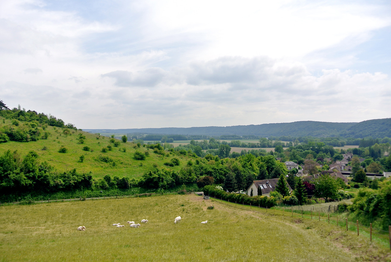 파리로 다시 돌아가는 버스 시간이 한 시간 정도 뜨는 바람에 무엇을 할까 고민하다.. 내가 가장 잘하는 것. 걷기로 결심을 하고 지베르니 구석구석 구경하기 시작했다. 그러다가 본의 아니게 산을 오르기 시작했는데요 (이런 일이 한두 번은 아니었다. 정처 없이 걷다가 내가 산을 오르고 있단 사실을 발견하곤 했으니.) 끝이 나올 때까지 걸어보자 하며 끝없이 걸었는데 어느새 난 풀숲을 헤치면서 산을 오르고 있었다. 아무리 걸어도 끝이 없었다. 시간을 보니 버스 시간이 가까워지고 해서 그냥 중간에 멈춰서 뒤를 돌아봤는데 사진과 같은 풍경이 펼쳐져 있었다.