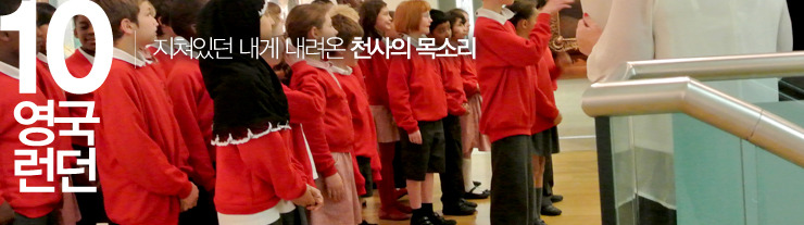 그래도 다행히 영국의 대부분의 미술관, 박물관은 공짜라서 '그래.. 그걸 구경하자' 해서 나 홀로 미술관 투어를 시작했다. 그러던 중 National Portrait Gallery에 들러서 구경 중이었는데 어디선가 합창소리가 들리기 시작했다. 무슨 소리지 싶어서 소리가 나는 쪽으로 가까이 가봤더니 사진 속 빨간 옷을 입은 아이들이 예쁜 목소리로 노래를 부르고 있는 게 아닌가.
