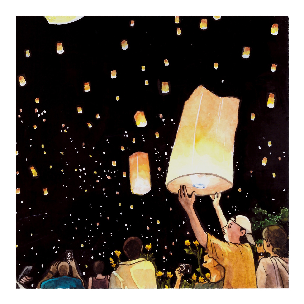 축제날이 되자 치앙마이의 올드타운을 비롯한 도시 전체가 수많은 관광객들로 불어났다. 2주 넘게 치앙마이에서 지내면서 봐왔던 마을의 모습과는 사뭇 다른 모습에 적응할 시간이 필요했다. 축제에 사람이 모여드는 건 당연한 일이지만, 막상 정신없는 축제 현장에 가보니 생각보다 훨씬 더 부담스러웠다. 내가 혼자였기 때문이다. 혼밥, 혼술, 혼영화 다 해봤지만 혼 축제는 처음이라 적잖이 서럽고 외로웠다. 전 세계에서 몰려든 다양한 인종의 사람들이 가족, 커플, 친구 단위로 하하호호 웃으며 하늘 위로 풍등을 띄우고 있었다. 하늘은 순식간에 소금을 뿌린 듯 셀 수 없는 풍등으로 메워져 갔고, 그것에 감탄하기도 잠시 시선을 내리면 군중 속의 고독을 입 안에 앙 물고 묵묵히 사진만 찍으며 돌아다니는 내가 있었다.