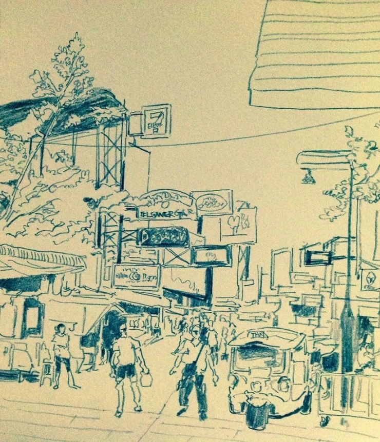카오산로드에 처음 진입했을 때 느꼈던 낯선 공기를 담고 싶었다. 다양한 사람들의 얼굴, 유러피언, 동양인, 흑인 다양한 인종이 섞인 재미난 골목. 재밌는 곳이다.