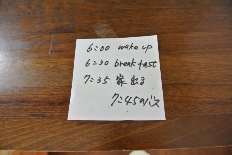 케이코는 이렇게 오늘의 아침스케줄을 포스트잇에 써주기도 했다. 6:00 wake up이라고 되있는데.. 한 30분 더 일찍 깨워주셨던 것 같다.