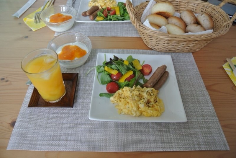 1층으로 내려가니 케이코가 아침까지 준비해줬다. 폭풍감동... 스크램블 에그와, 오렌지주스, 요거트, 샐러드, 소시지, 모닝빵까지..!! 호텔 부럽지 않은 아침이다. 작년에 유럽에서 이용한 호텔 조식이 정말 이렇게 나왔는데.. 맛있기도 정말 맛있다. 정성들여 차려주셨으니 맛있게 싹싹 비워먹는다.