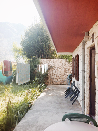 저렴한 가격에 구한 비앤비는 뜻밖에 독채였다. 주인집은 위에 따로 있었고, 바로 아래층, 침실이 하나 딸린 집 하나 전체가 숙소였다. 부엌도 있고 마당도 있고! 마당에선 코토르의 눈부신 바다와 장엄한 검은 산들이 보인다.