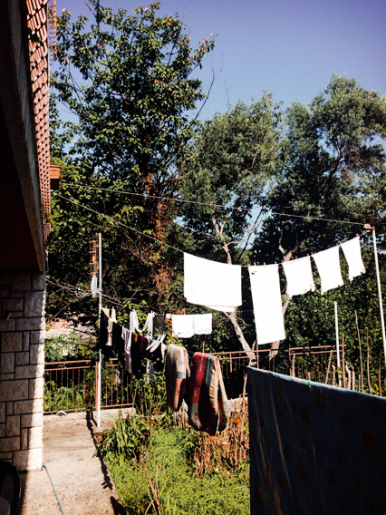 아침에 일어나 밖에 나가보니 예상대로 널어놓은 빨래들이 비에 홀딱 젖어 모래 바닥에 내팽개쳐져있었다. 다행히도 날아간 건 없었다. 모래를 털고 다시 빨래줄에 빨래를 널었다.