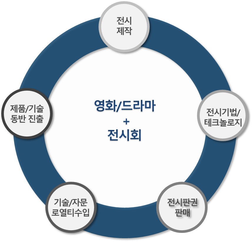 미국의 영화산업은 영화로 끝나지 않는다. 영화가 전파한 자연스러운 문화가 전 세계 매체를 통해 상영되고, 이를 다시 전시 회사들이 전시회로 제작, 전 세계에 전시 판권 및 각종 로열티를 팔아 막대한 수입을 거둬들인다. 영화-전시-기업의 동반 수출이 바로 할리우드가 전시회를 만드는 이유인 것이다.