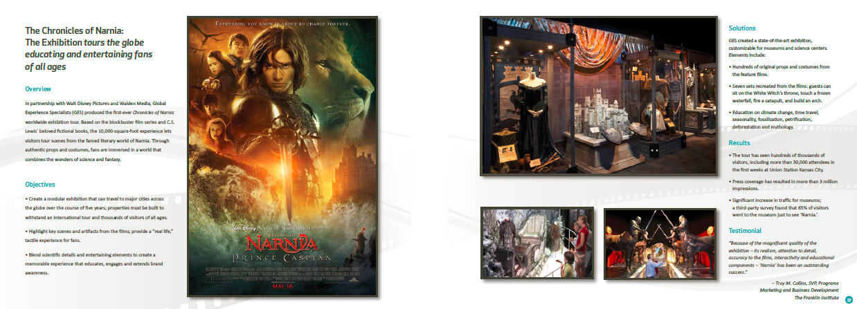 이 기업은 비단 해리포터뿐만이 아니라 카, 나니아, 볼트, 업 등의 애니메이션과 실사 영화를 가리지 않고 할리우드 영화의 전시 판권을 사들여 전시회를 제작한다. 그리고 전 세계에 지속적인 판매를 통해 '영화 배급-미국 문화 전파-전시 수출-관련 기업 및 기술 수출'의 선순환 효과를 거두어들인다. 그들은 최근 또다시 새로운 블럭버스터급 전시회 - Avatar Exhibition을 제작했다.