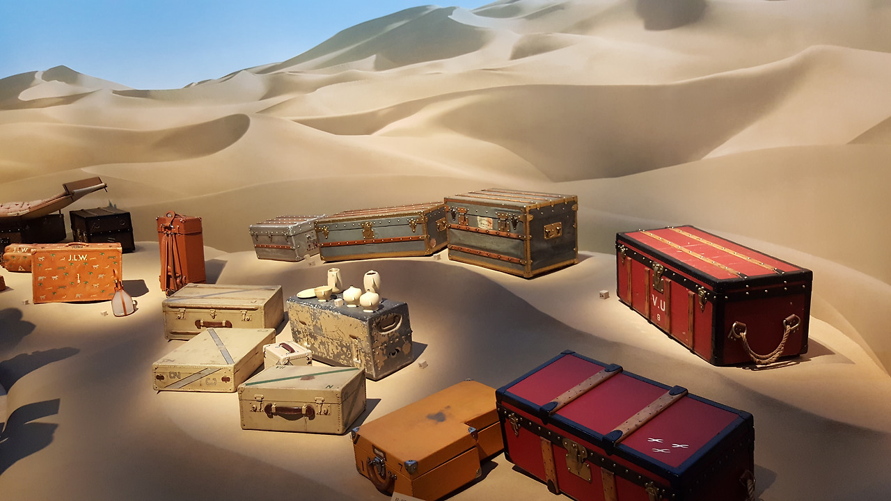 특히 전시기법적으로도 트렁크의 재료가 되는 나무, 가죽, 천, 그리고 디자인 패턴들을 하나하나 오브제로 표현한 것은 루이비통의 가방이 어떠한 재료와 제작과정으로 이루어지는지 잘 표현하였다. 더구나 이를 장인이 직접 시연하는 실제 모습을 보여줌으로써, 가방을 소유한 사람에게 자부심을 느끼기에 충분한 과정을 표현한다. 항공여행, 보트여행, 기차여행등과 함께 하는 루이비통을 표현하기위해 공간 자체를 하늘, 해변, 기차공간으로 표현한 것은 시공간의 일치라는 전시 표현의 정점이었다.