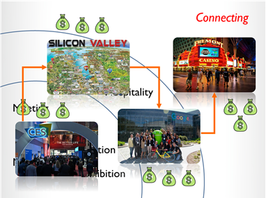 이 모든 것은 우리가 해외 전시회에 참가하는 경우를 떠올려보면 쉽게 이해가 갈 것이다. 라스베이거스 CES 전시회를 방문하면 전시장뿐 아니라 실리콘 밸리의 기업들을 방문하며 미국의 IT 산업을 파악하고, 저녁에는 라스베이거스의 화려한 공연과 이벤트, 게임을 즐기는 것처럼 말이다.