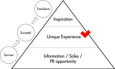 두 번째 실패 원인은 코로나 이후 급격히 온라인 기술이 발달하면서, 도시가 오프라인만의 특별한 경험을 제공하지 못할 경우 마이스 방문자가 사라지고 얼라이언스의 가치가 없어지는 데에 있다. 매슬로우의 인간 욕구단계설과 마찬가지로, 마이스 참가자도 욕구의 단계가 있다. 가장 기본적인 욕구는 마이스를 통한 정보 습득과 기업 홍보, 제품 판매인데, 이 욕구들이 이미 온라인 미팅 기술과 쇼핑 플랫폼으로 해결되었다. 그래서 여전히 이런 기본적 서비스로 마이스를 하는 사업자나 도시는 더 이상 온라인과의 경쟁에서 이길 수 없다. 코로나가 마이스 사업에 가져온 변화를 딱 하나만 얘기하라면, 그것은 바로 오프라인의 도시는 ‘그곳에 가야만 하는 이유’를 반드시 만들어야 한다는 것이다.