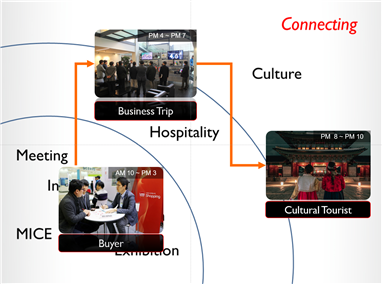 도시에 마이스가 필요한 이유는 마이스 참가자의 동선을 쫓아가 보면 알 수 있다. 어느 종류의 비즈니스 이벤트이건 그 행사에 온 방문자는 마치 카멜레온처럼 그 도시에 머무는 3-4일 동안 모습을 바꿔가며 움직인다. 우선 전시회가 열리는 오전 10시부터 오후 2-3시까지는 전시장에서 전시 기업이나 세미나를 들으며 관련 기업 정보를 입수한다.