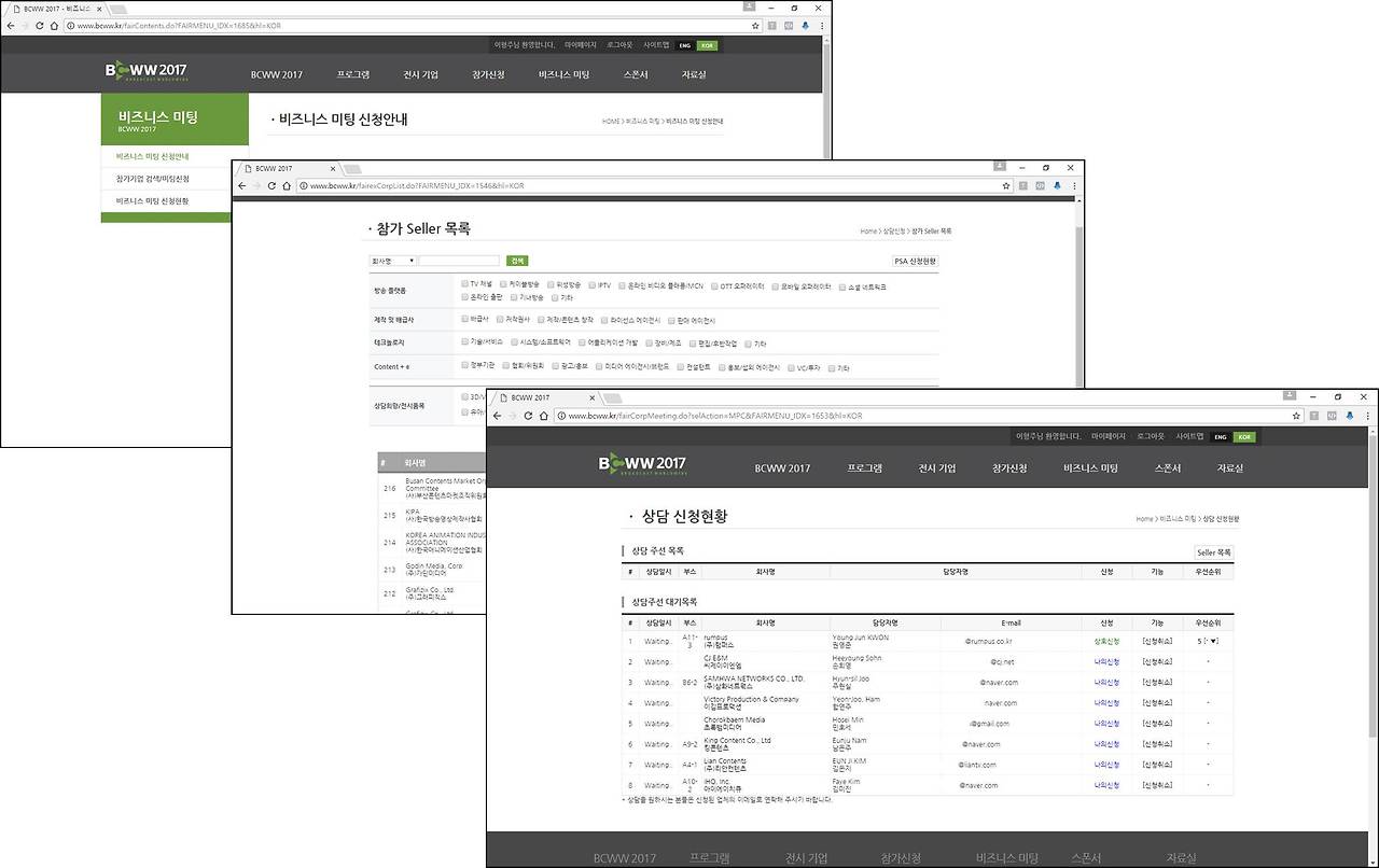 전시회 홈페이지상에 등록된 바이어나 참가업체와 현장에서 미팅예약을 할 수 있는 '비즈니스미팅' 예약 프로그램이 그것이다. 이를 활용하면 사전에 전시회에 등록된 잠재 바이어 정보를 얻기 쉽다. 하지만 관련 없는 분야의 정보도 포함되어 있는 경우가 많아 미팅을 신청하기 전에 사전 정보를 파악해야 불필요한 미팅을 줄일 수 있다.