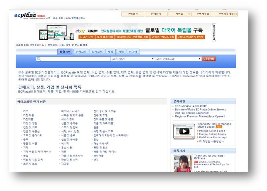 이씨 플라자는 일종의 중개상으로 전 세계의 셀러와 바이어를 중개해 준다. 알리바바와 같은 역할이라고 보면 된다. 그래서 중개무역을 위해 유용한 전 세계의 전시회 정보가 카테고리별로 잘 정리되어 있다. 또한 바이어를 찾거나 글로벌 도매업체를 찾는 것이 주 비즈니스이기 때문에 현지의 고객을 찾기를 원한다면 유용하게 활용할 수 있다.