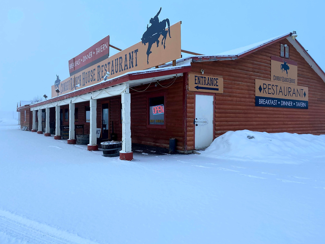 브라이스캐년에 거의 다가와 갈 때 쯤은 많은 눈이 쌓여있었다. 신기하게도 도로는 깨끗하게 제설작업이 되어있었는데, 분명 이 황량한 넓은 길에 제설작업차가 왔다 갔을것 같지는 않고, 그렇다고 통행량이 많아서 차들이 자연적으로 길을 만들었을 것 같지도 않고, 하여간 운전하기에 부담없이 잘 정비된 도로가 인상적이었다. 그렇게 도착한 숙소에서 정말 잠만 자고 아침에 일어나니 밤새 눈은 더 많이 내려 설국을 만들어 놓았다. 식당까지 가는 길에 개미발자국 하나 보이지 않던 길이 너무 인상적이어서 사진에 담았으나 사실 더 인상적인 일은 식당에 들어가서부터 일어났다.