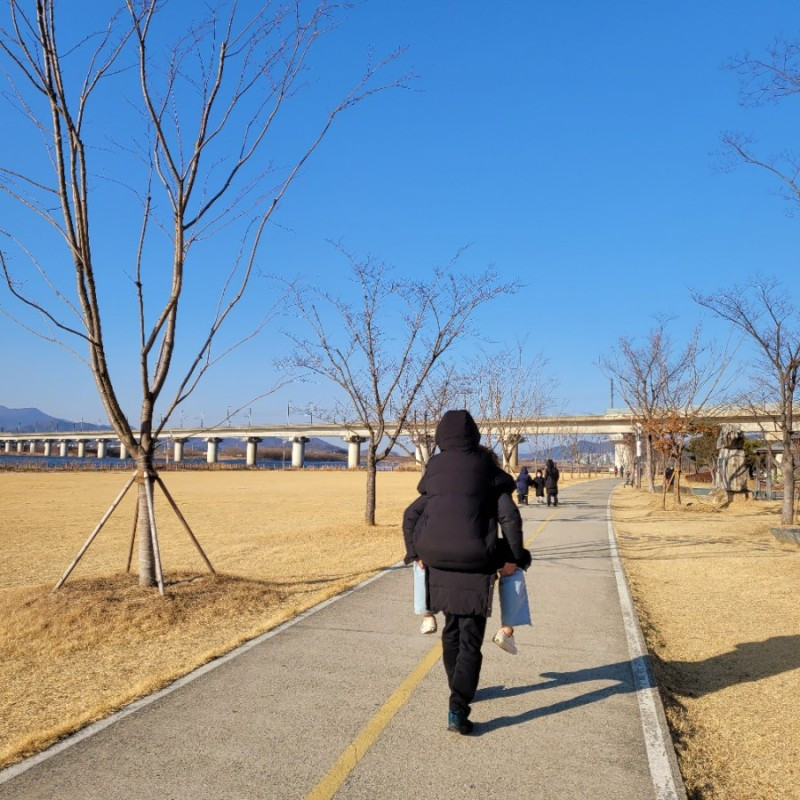 한적한 고개를 돌아가니 칠곡보가 있었다. 낙동강을 끼고 넓게 펼쳐진 공간은 생각보다 아름다웠다. 불어오는 강바람을 맞고 움츠려 걸어도 머릿속이 찌릿해도 따순 느낌이 있었다. 그건 아빠 등에 업힌 아이의 등이 전해 주는 허그였다.