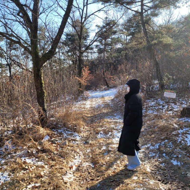 흙 속의 눈이 얼어서 녹지 않아서 조금뿐인 눈이 많아 보였다. 뜻밖에 하얗게 포근했다. 눈을 밟으면 소리가 날 것만 같아 귀 기울였더니 진짜 났다. 작아도 울림은 산속의 공기를 흔들고 겨울 정서를 안겨주었으니, 요술의 고개가 맞다.