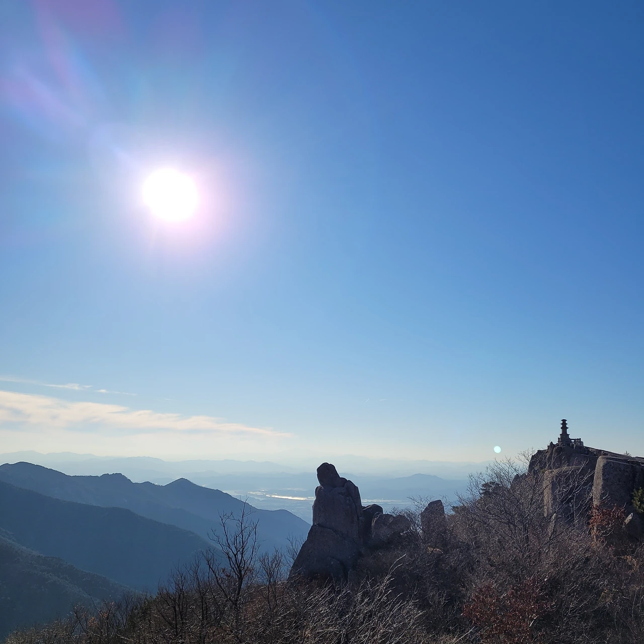 하늘빛을 표현하면 사라질까 봐 품으면 투명해졌고 투명해지면 파고들어서 모조리 푸르렀다. 산꼭대기에 절이 있었다. 초를 밝혔다. 절을 하고 고개를 들면 텅 빈 침묵도 있었다. 모여서 펼쳐진 것들이 사계절을 품고 비어 있었다. 깊이 보면 곳곳에 계절이 스쳤다. 봄을 앞에 두고 하얀 눈길을 걸었고 모퉁이 낙엽은 어딘지 가을을 닮아 바스락거렸다. 산 위에 올라 서면 참 좋다. 산아래 구불한 길을 어떻게 걸어왔을까 대단히 감격스럽기도 하고 선물처럼 숨겨진 풍경은 한눈에 들어온다. 소리 내던 바람은 올라와 시렸고 내려갔다 다시와도 다른 바람이 내 주위를 맴돌다 파고든다. 아프지 않게 시원하다. 속삭이다 물든 지극한 사랑이다. 영원히 사라지지 않을 사랑 같은,