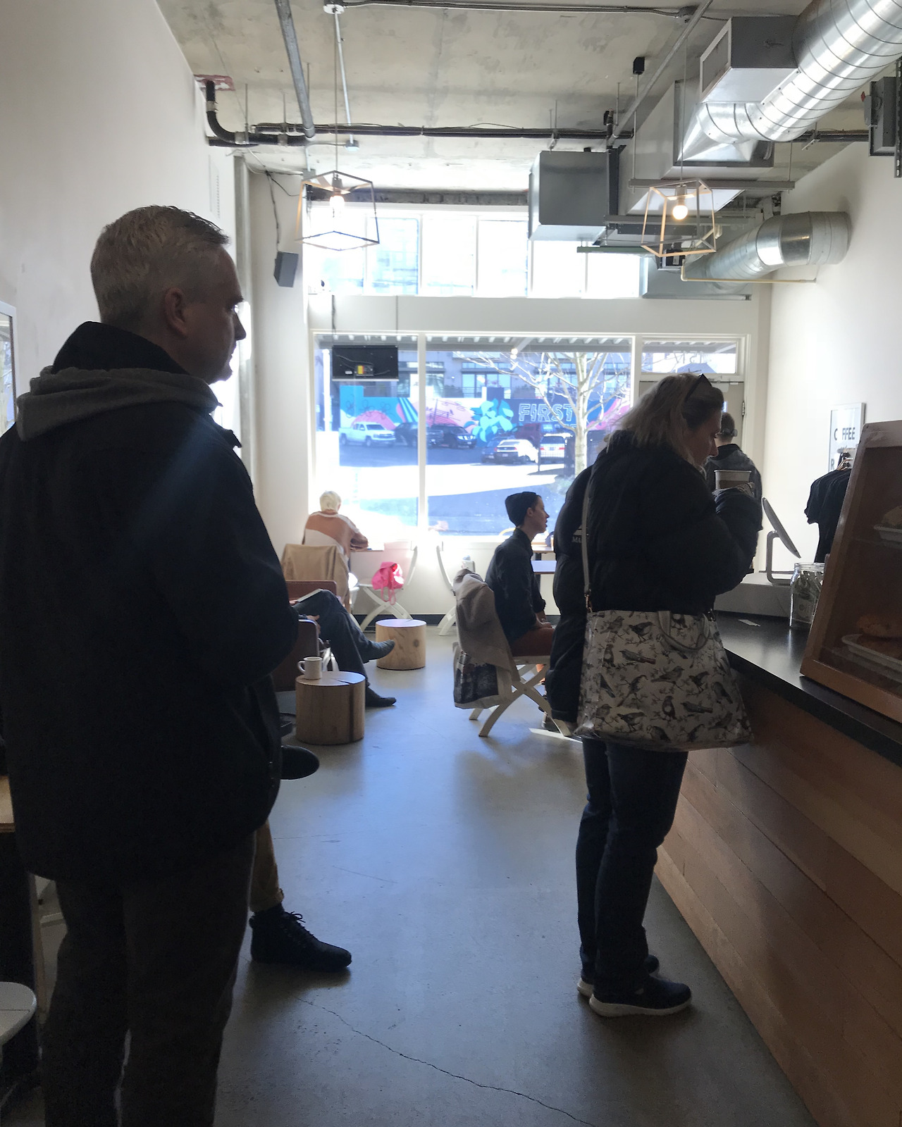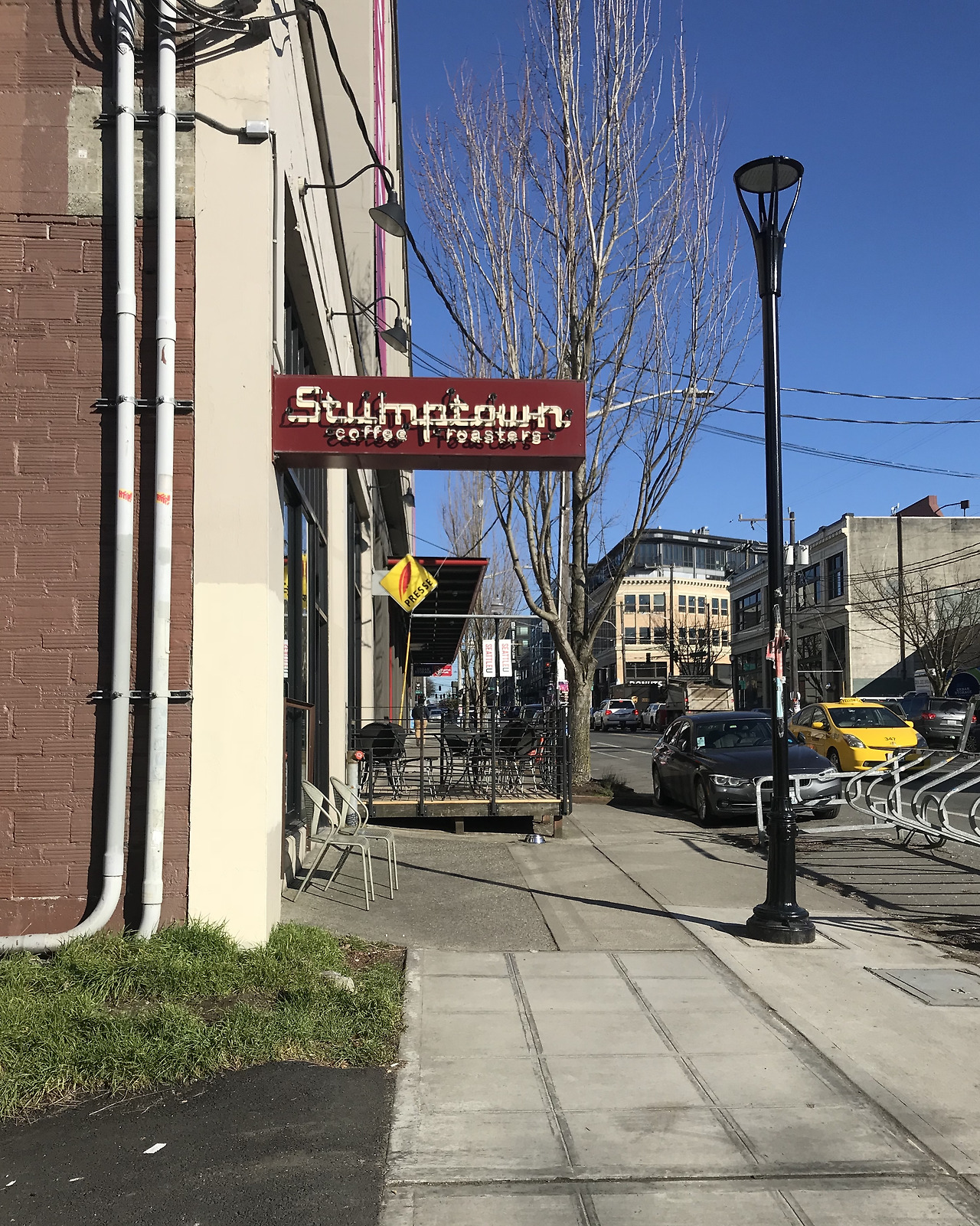 시애틀에 위치한 이 스텀프 타운은 특히나 매장이 매우 작고 사람들이 다닥다닥 붙어 있어서 사진을 거의 찍지 못했다. 어떻게 찍어도 사람들이 항상 앵글 속에 들어왔고, 그들도 썩 내켜하지는 않았으리라. 내가 주문한 커피를 받아서 매장 밖으로 나왔고, 찍은 사진이라곤 간판과 내 음료 사진이 전부였다.