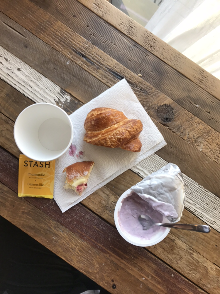 생각보다 풍성했다. 냉장고엔 각종 요거트와 우유, 그리고 테이블엔 네다섯 가지의 빵들이 있었다. 그리고 커피와 다양한 티까지 준비되어 있었다. 곰곰이 생각할 겨를도 없이 일단 냉장고에서 블루베리 요거트를 하나 꺼냈고, 크루아상 하나와 머핀을 집었다. 그리고 잉글리시 블랙퍼스트 티백을 하나 꺼내어 뜨거운 물에 담가 두었다.