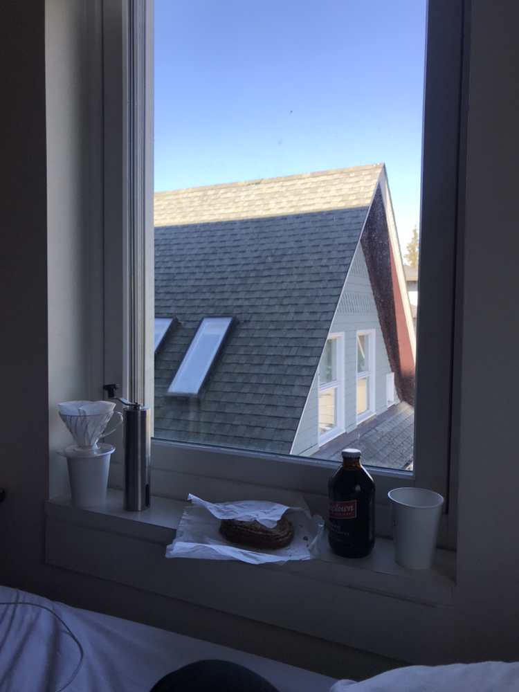 조금은 허겁지겁 빵을 먹었다. 미국으로 넘어와 아직 식사를 제대로 하지 못해서 뭔가 끝을 알 수 없는 허기의 구덩이에 빠져있는 기분이었다. 벽에 붙어있는 아이패드에서 유유히 흘러나오는 느릿한 음악과는 반대로 허겁지겁 아침을 먹고 방으로 돌아와 오늘 하루의 계획을 세우기 시작했다.