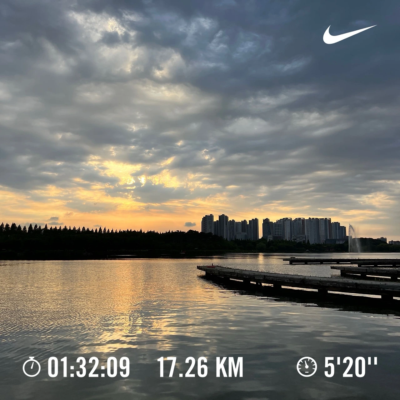 10km를 뛰는 게 익숙해지다 보니 21km(하프 마라톤)를 뛰고픈 욕구가 생겼다. 러닝을 시작한 지 51일째가 되는 5월 마지막 날, 퇴근 후 21km에 도전해 보기로 했다. 원래는 15km만 뛸 생각이었다. 하지만 11km쯤 달렸을 때 10km를 더 달릴 수 있다는 느낌이 들어서 목표를 즉시 높게 잡았다.