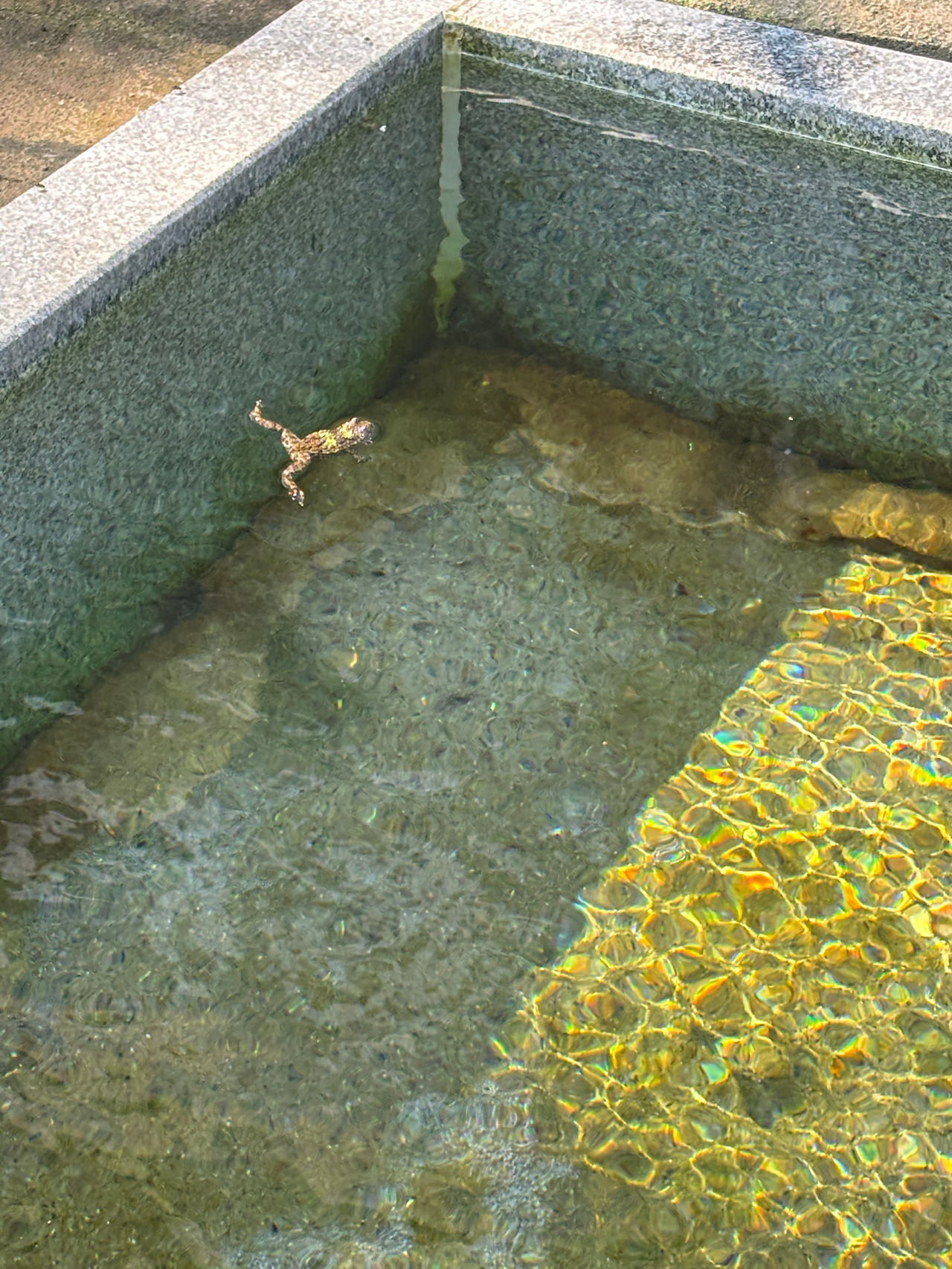 할머니 집에서도 물놀이는 빼놓을 수 없다. 산에서 내려오는 물로 만든 깨끗한 시골 수영장에는 항상 개구리 손님이 먼저 와서 수영을 즐긴다.