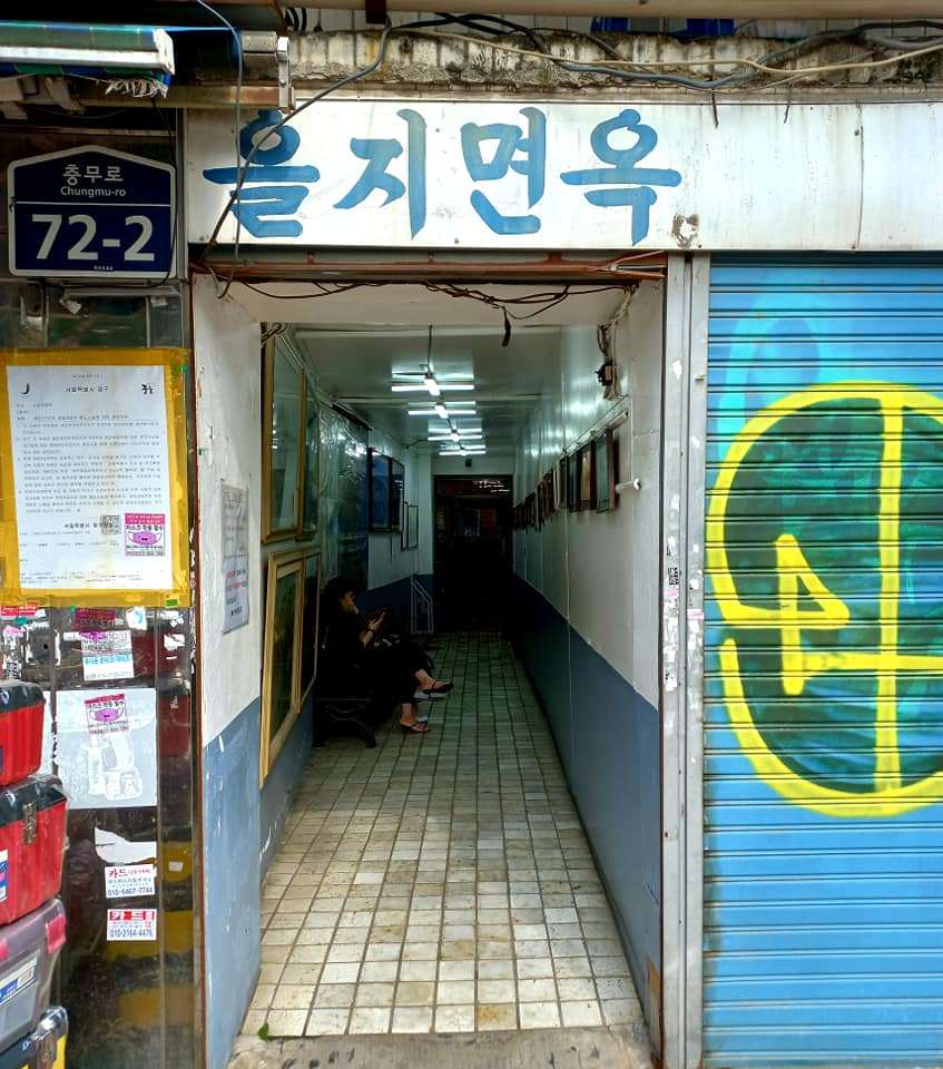 재개발로 사라진 지번 충무로 72-2의 옛 을지면옥 입구.